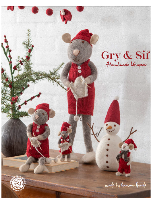 Extra Large Felted Mouse w/ Snowman - Grey (60cm)