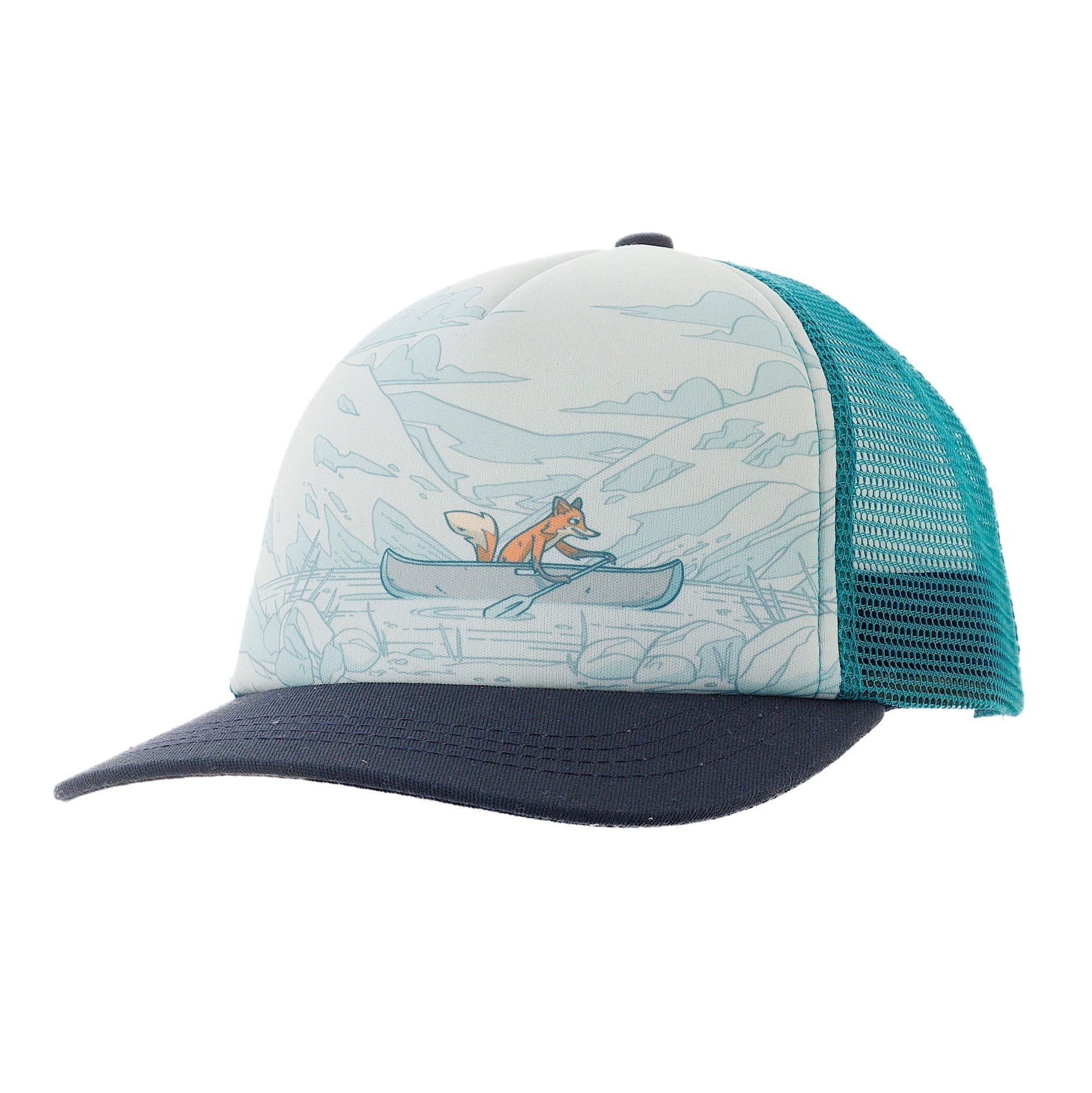 Our favourite friends the Bear and Fox enjoying some of our favorite activities on a mesh back kids' trucker hat style. A very popular returning style, the Actimals hat is a favourite.