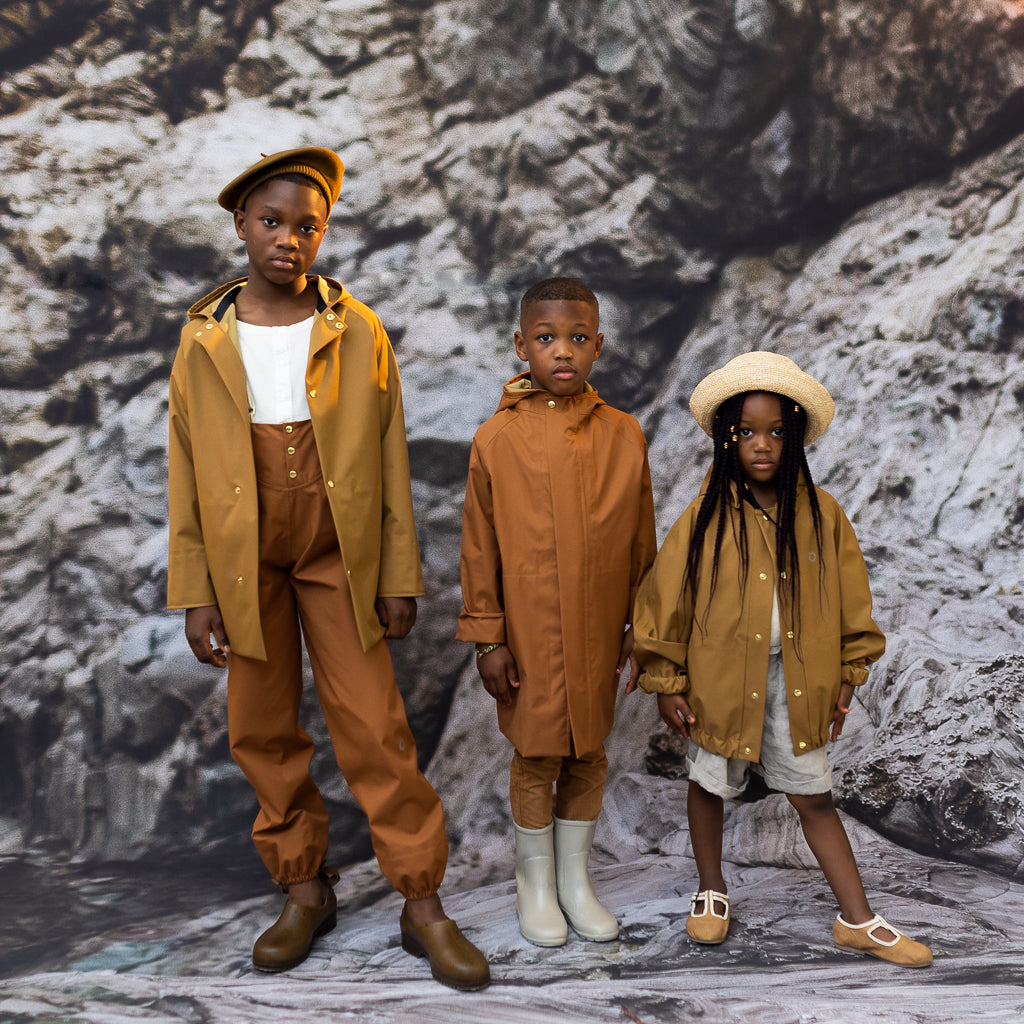 Made for children with a penchant for puddle jumping, the Rain Pants are inspired by French under trousers. The brass snaps open at the waistline to support independent dressing and there are several adjustable features: the suspenders, waistband and stirrups. This waterproof design fits at least three sizes and accommodates warm underlayers, so your child has the freedom to explore while staying cozy and dry.