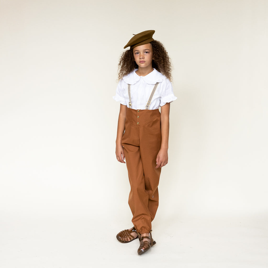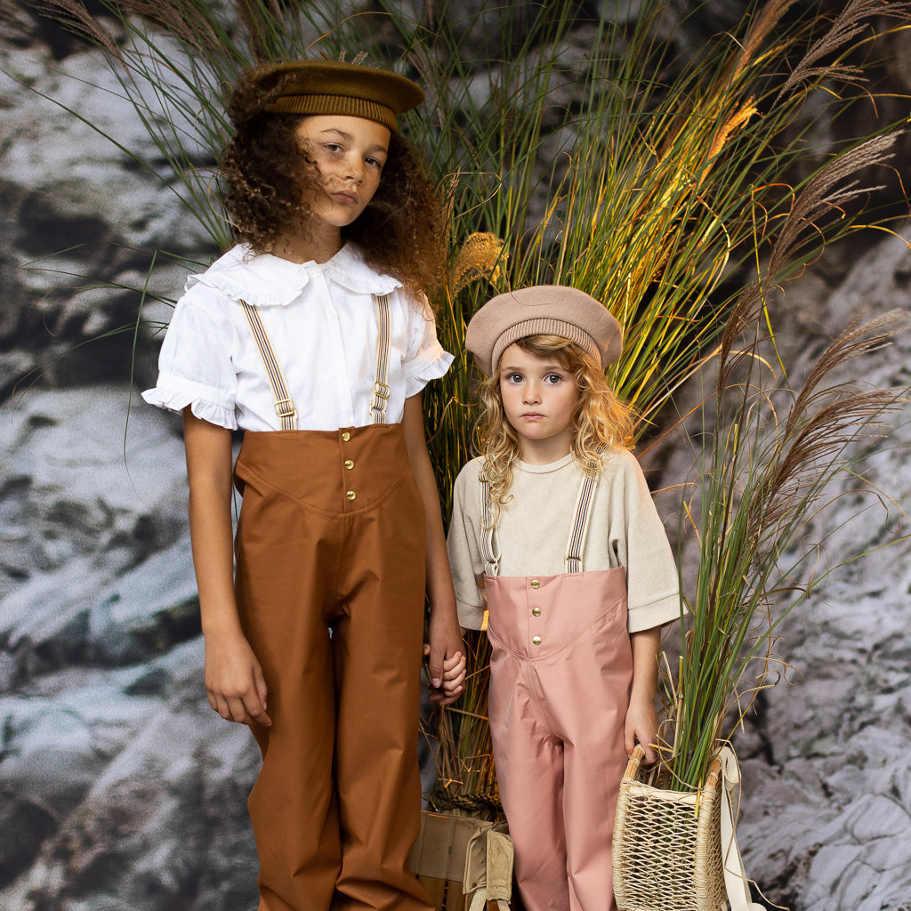 Made for children with a penchant for puddle jumping, the Rain Pants are inspired by French under trousers. The brass snaps open at the waistline to support independent dressing and there are several adjustable features: the suspenders, waistband and stirrups. This waterproof design fits at least three sizes and accommodates warm underlayers, so your child has the freedom to explore while staying cozy and dry.