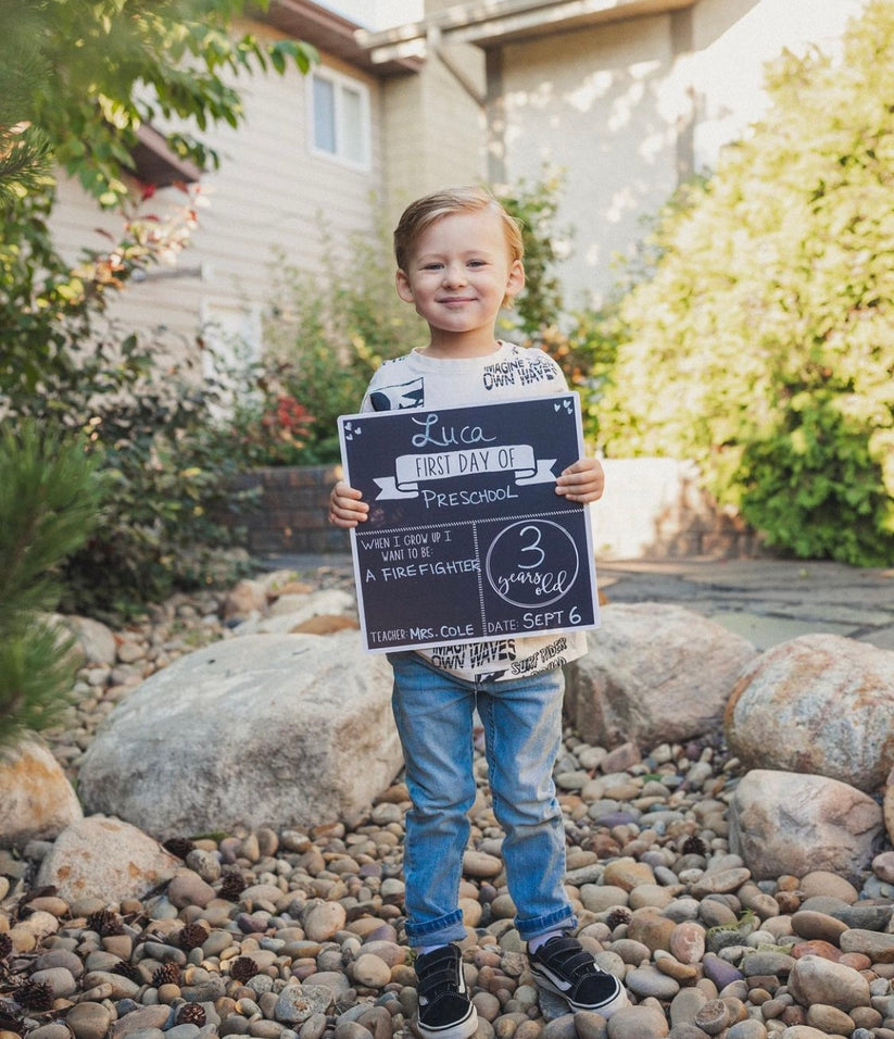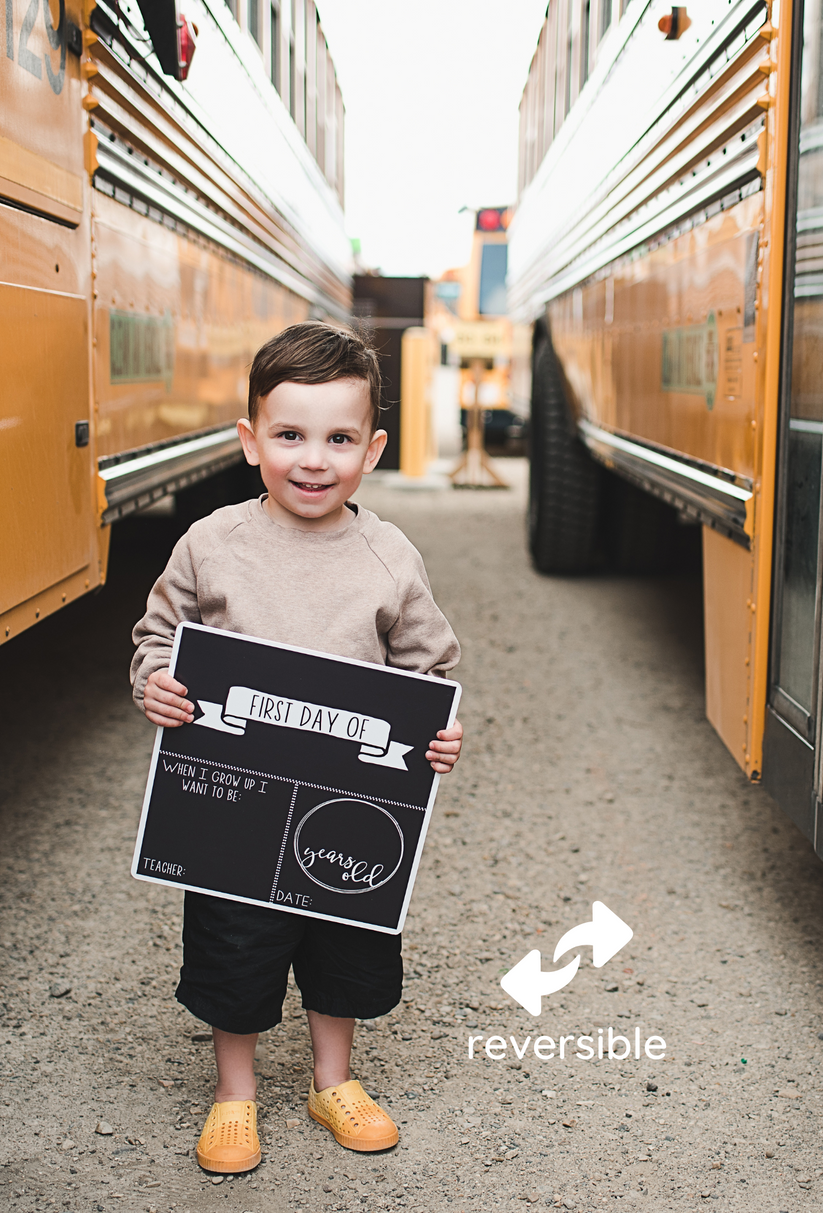 Our reversible school boards measure 12"x12", and have first day on the front and last day on the back!