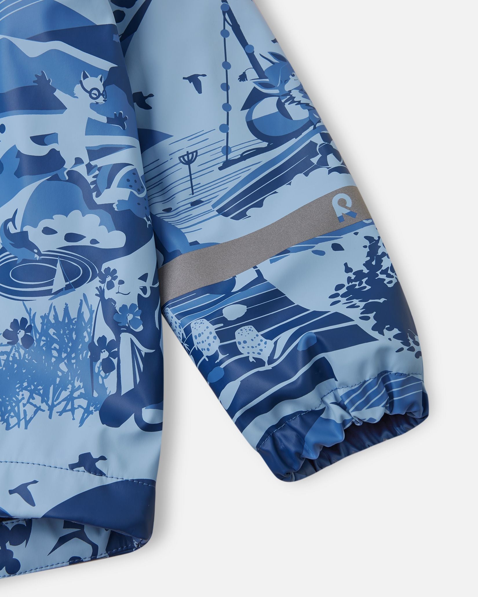 This kids' warm rain jacket comes with a comfy fleece lining. It's made from a flexible material that doesn't harden in the frost. By adding extra layers for additional coziness, you get a rain jacket for all year around. Its seams have been welded waterproof so that no rain gets through to skin. The detachable hood is safe during active outings and is attached with snap buttons that come off easily if it gets caught on something. This rain jacket for kids has elasticated cuffs and reflective details on the sleeves and hood. All Reima rainwear is made from a soft material without PVC.