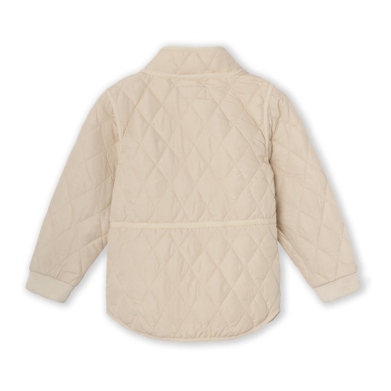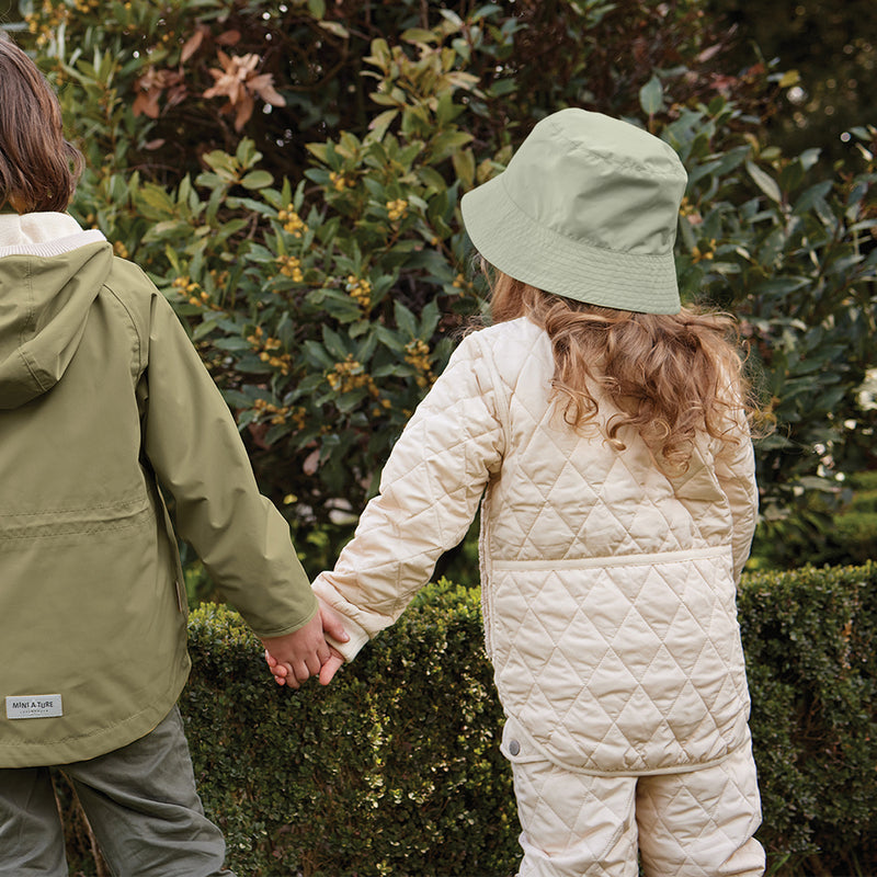 The Lou Thermo Jacket is waterproof, breathable and warm enough for a cold fall day. Thermo jacket from MINI A TURE in recycled polyester. The jacket has pockets in the front, and the jacket is a bit longer on the back.