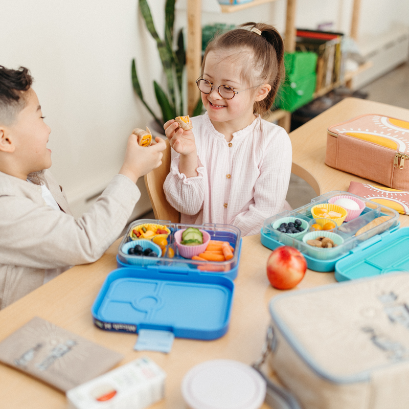 The perfect lunch companion, this kids' lunch box fits a bento box, small drink, a snack container, matching ice pack and more! Thoughtful features include an insulated interior, removable liner for easy cleaning, detachable straps and easy-to-carry handle.