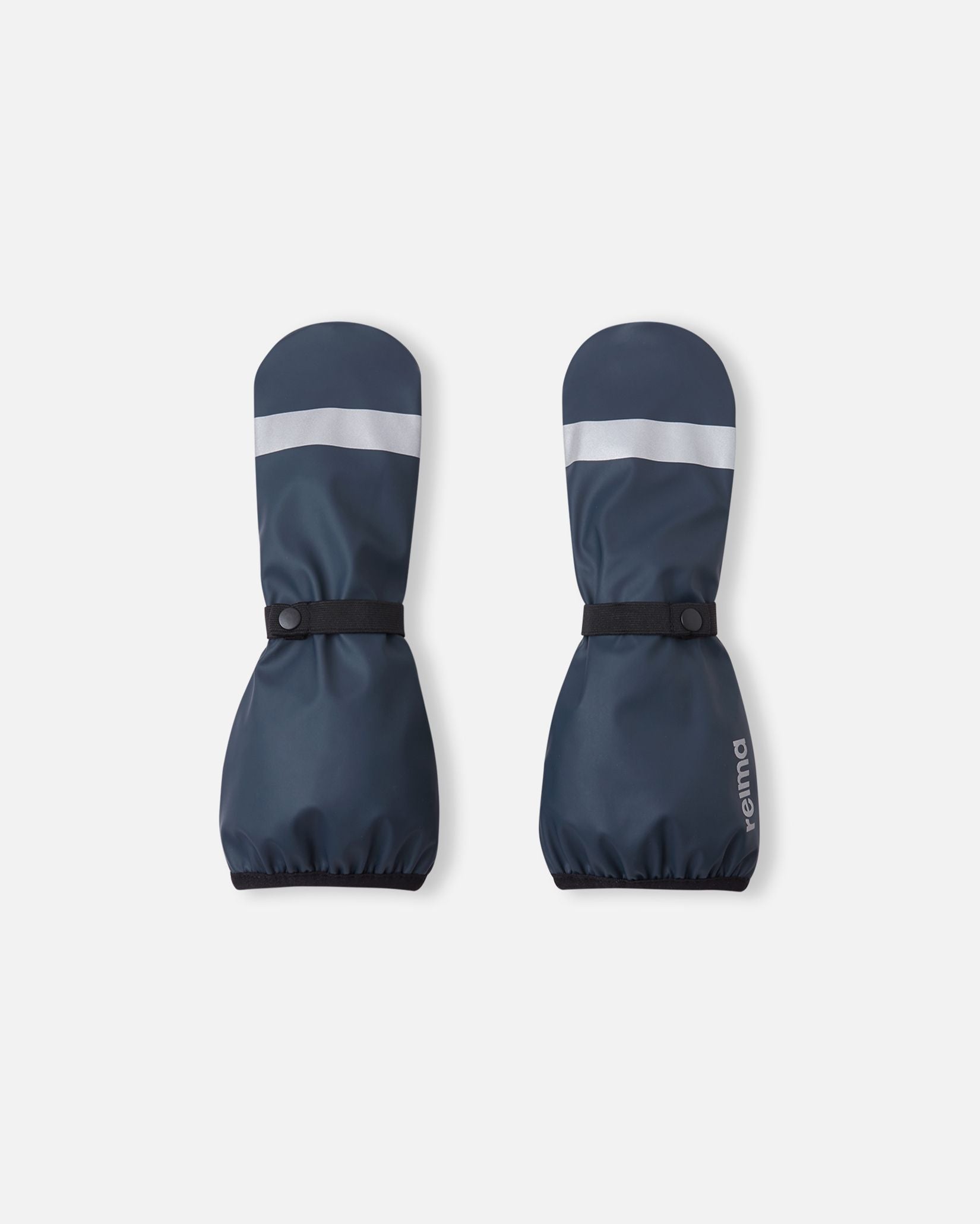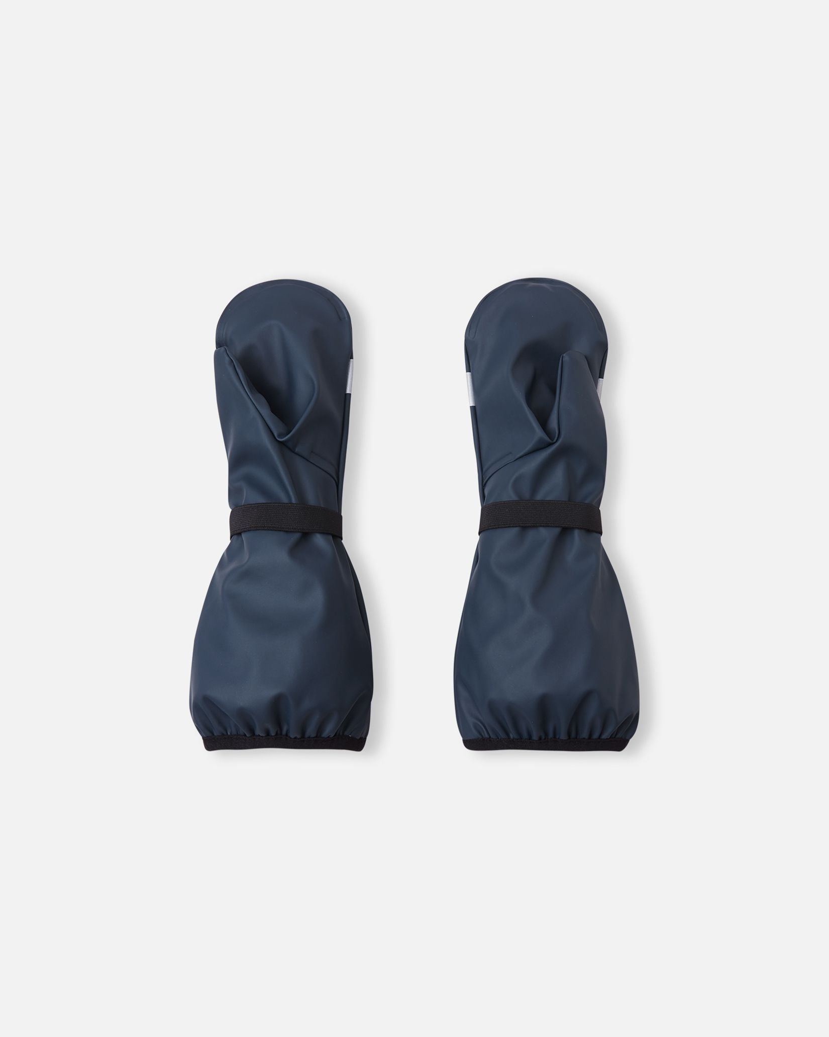 These kids' waterproof mittens are made from a comfortable, flexible material and have a knit lining.