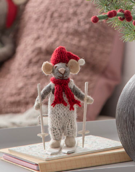 Small Boy Mouse on Skis w/ Grey Pants - Grey (12cm)