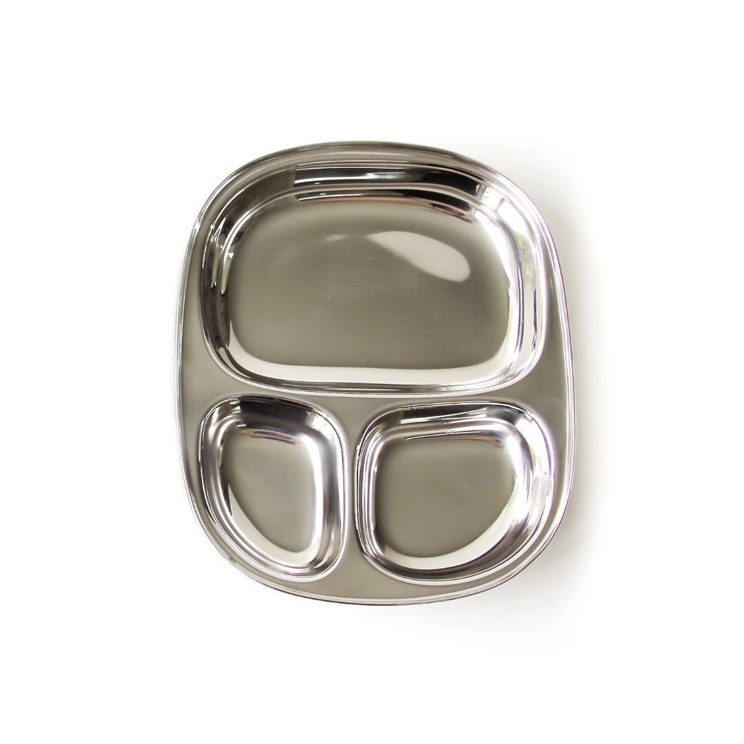 - The stainless steel lunch tray has a lip that makes self-feeding easier for toddlers.