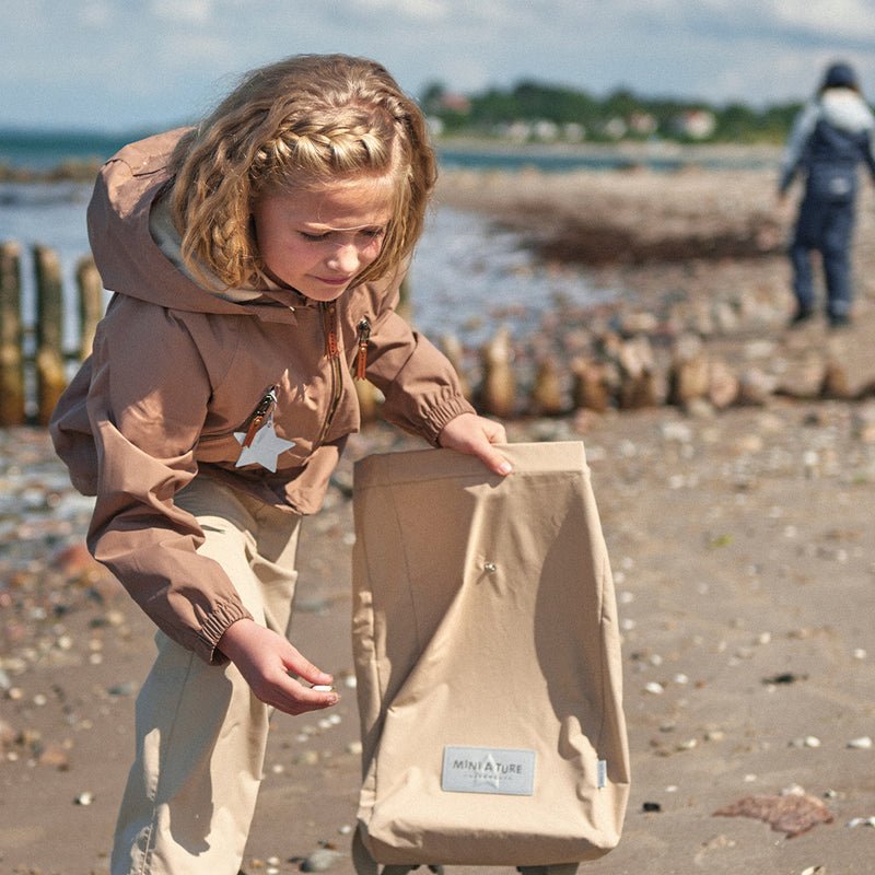 Cool, practical and waterproof backpack made from durable, recycled nylon. The backpack has adjustable straps and a buckle over the chest making it fit firmly to the body. The upper part of the bag should be folded around to open and close it. This style is made from recycled nylon. Fits 8,5 L and kids aged 1-8 years old.
