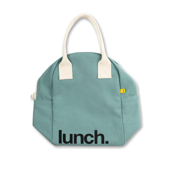 Deceptively roomy lunch bag that packs flat. Safe and non-toxic. Fully machine washable. Rinseable, tested food-safe lining to contain light spills. Interior pocket (for water bottle or ice pack). Sustainably and ethically made with organic + recycled materials.